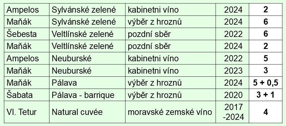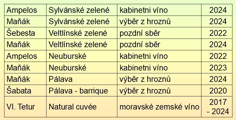 Prvních šest vín jsou z odrůd v našich vinohradech pomalu na vymření. Jsou to odrůdy staré, které jsou náchylné a následně náročné na ošetření proti plísňovým a houbovým chorobám. Další jejich nevýhodou je, že jsou bujně rostoucí, tedy jsou náročné na zelené práce. Jsou to odrůdy které se velmi pěstovaly v devatenáctém a na začátku dvacátého století. Například Veltlínské zelené je velmi plodná odrůda, která bez redukce dává výborné výnosy, ale víno není tak kvalitní. Naštěstí se již zbavilo cejchu z minula a zažívá tak trochu renesanci, ale ta zbylá.... Takové štěstí nemají. Plochy vinohradů se nezvětšují tak moc, aby se na nich daly pěstovat jak odrůdy staré, tak nově vyšlechtěné. Což si připomenout vína ne tak atraktivní, ale svá.